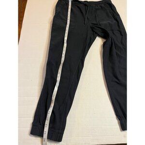 These Athleta Farallon jogger pants offer a comfortable fit with their soft cotton and spandex blend. Designed for versatility, they feature an elastic waistband and convenient front pockets, making them suitable for daily wear or light exercise. The chic black color and sleek design ensure a stylish appearance. Excellent preowned condition, no rips holes or stains. See photos for approximate flat measurements. Athletic, casual, workout