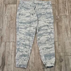 Athleta Farallon Jogger Pants Womens XL Gray Cream Camo Print Drawstring Pockets