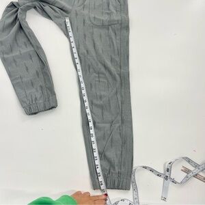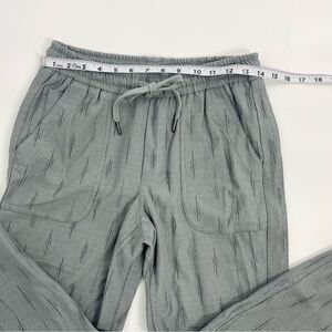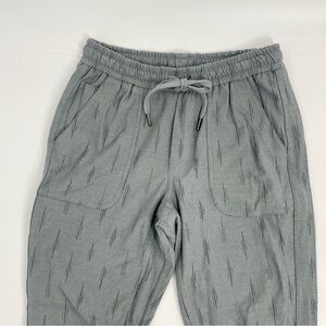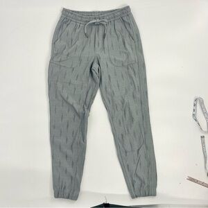 Athleta Farallon Printed Jogger Spliced Magic Metropolis Grey Women’s 4 Stretch. Has a light grey heavy cotton base with dark grey slashes all over. in excellnt pre-owned condition with no visible flaws.