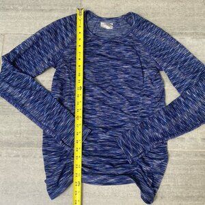 Athleta Fastest Track Ruched Long Sleeve Fitted Workout Top Blue Size Medium