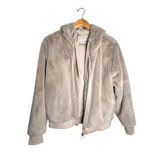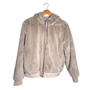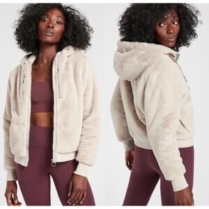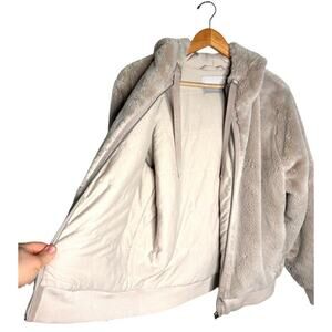 Athleta Faux Fur Jacket Ritual Size Large Cream Champagne Cotton Full Zip