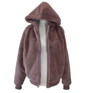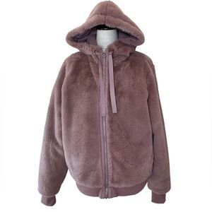 Athleta Faux Fur Zip Hoodie Jacket in Mauve Size Small
