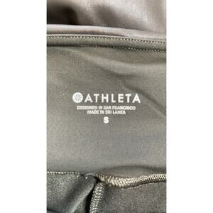 Athleta Faux Leather Leggings All Over Gleam Tight Large Grey High Rise Size S. High-rise ,hidden pocket, rise 11", inseam 27", waist 28". Great pre-owned condition.