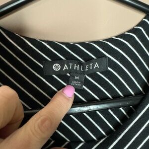 Stylish black and white striped flowy midi dress by Athleta in a size medium.