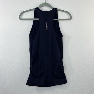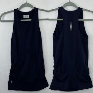 Athleta Finish Fast Racerback Tank Navy Ruched Sides Sleeveless size Small