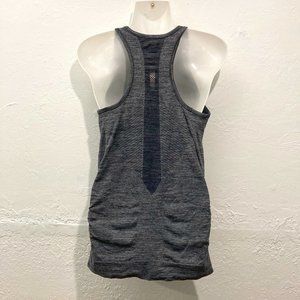 Athleta Finish Fast Racerback Tank Top Heather Gray Ruched sides Logo Athletic M