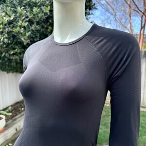 Athleta Finish Fast Ruched Reflective Pullover Thumb Holes Pocket Black Sz XS