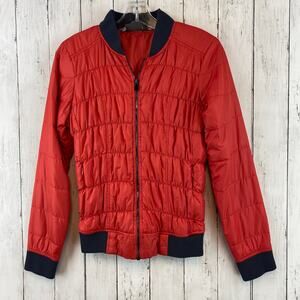 Athleta Fire Red Dobby Goose Down Quilted Puffer Bomber Jacket 138700 Size Small