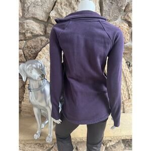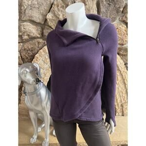 Athleta Fleece Line Cowl Neck Pullover Layered Jacket Women's Size XXS. Measurements: bust: 17, length: 27 in back, 23.5 in front. Fabric shows light wear.