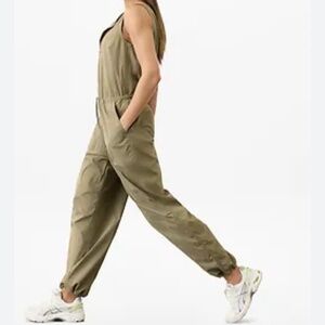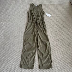 Athleta Flex Zip-Up Sleeveless Jumpsuit - Picoline Olive - Size Medium - Travel/Athleisure/Casual - NWT. Features a round neckline with front zip closure, drawcord waist for a custom fit, side pockets, drawcord at the hems for jogger style option, and lightweight, breathable performance fabric with 40+ UV protection. Perfect for your workday commute and weekend travels, from meetings to meetups. Excellent condition - NWT!