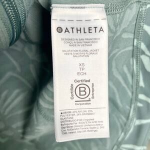 Gently used Athleta floral salutation jacket. Made with Powervita™ fabric that feels buttery soft and supports you like a gentle hug. Secure zip pockets and thumb holes. Breathable, stretchy, sweat-wicking and quick-drying with UPF 50+. Fitted.