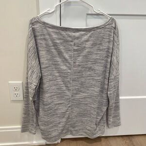 Stylish off-shoulder sweatshirt. Light gray color. Ideal for casual wear.