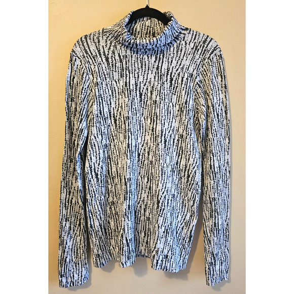 Athleta Flurry Elemental Seamless Turtleneck Top Base Layer sz M, black/white