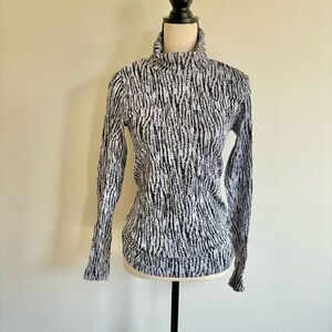 Athleta Flurry Elemental Snowscape Black White Spacedye Turtleneck Sz S