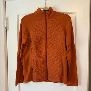 New without tags, never been worn. Jacket-great for running or insulated layer. Quilted in the front and stretchy everywhere else! Meant to be fitted. Great pumpkin like color!
