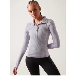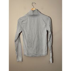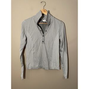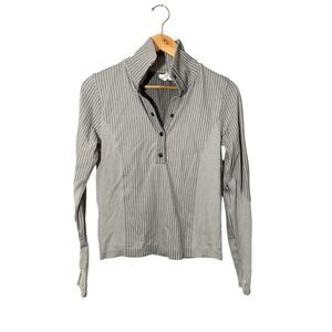 Athleta Flurry Seamless Henley Top Grey Ribbed Stripe Run Thumbhole Small 466524