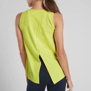 Athleta Foothill Seamless Split Back Athletic Tank Top In Neon Green Size M.