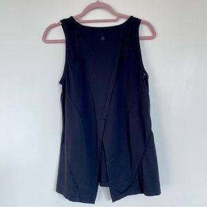 Black Chafe-Free Seamless Tank with opening in the back that can be worn tied or untied for custom fit and styling. .