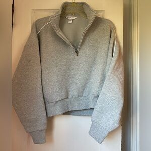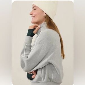 Athleta Forever Fleece 1/2 Zip High Hip Piping Sweatshirt in Grey/white Sz S