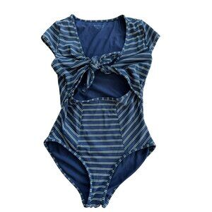 Athleta French Stripe Navy Blue Tie Front Cut-Out Swimsuit Size Small Womens