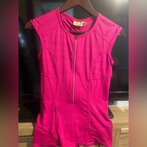 Bold fuchsia jacket with a sleek zip-up design. Perfect for active wear.