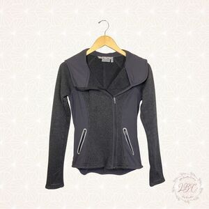 Athleta Full Asymmetrical Zip Hoodie Jacket Charcoal Gray Thumbholes
