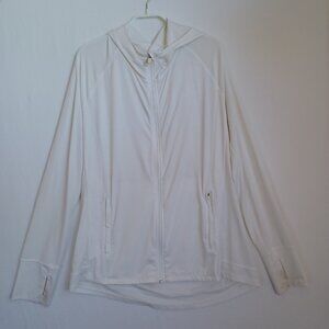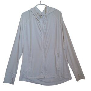 Athleta Full Zip Hoodie Jacket White Stretch Victory Hooded Workout Womens Large