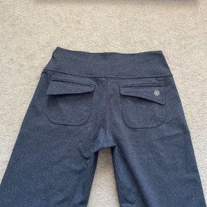 Athleta Fusion S Gray Heather Yoga Flare Wide Leg Pants Athleisure Flap Pockets.