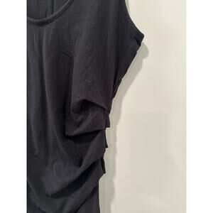 Black. Gathers at sides. Double layer of fabric so not see thru.