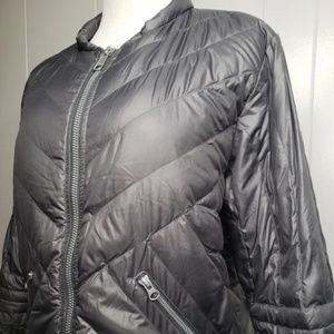 Great condition with no stains or holes. Charcoal gray. Semi cropped style with full zip front and two zip side pockets. Goose down filling.