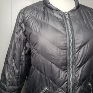 Athleta Geneva Goose Down Filled Shadow Gray Quilted Short Puffer Jacket, Sz XXS