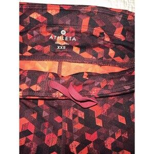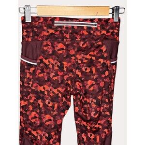 Athleta Geo Print Knit Mesh Yoga Pants Athleisure Pockets Red Black XXS