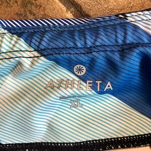 Athleta Geometric Multicolor Capri Cropped Leggings Size XL. The pants have a never ending drawcord. It has a back waistband zip close pocket. There is mesh details at calves. Measurements in photos. In good, pre-loved condition. Comes from a smoke free home.