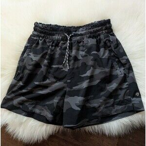 Athleta Girl All Play 3” lined black Grey camo shorts 14 XL