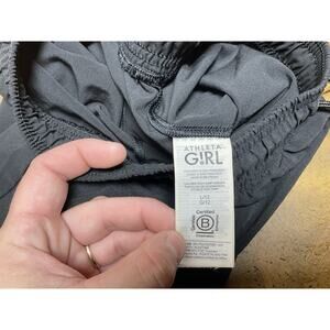 The Athleta Girl High Jump Jogger Athletic Pants in black size Large 12 are perfect for active girls who want to stay comfortable during various athletic activities. Made from a blend of 14% spandex and 86% polyester, these pants feature a pull-on closure, elastic waist, and elastic ankles for a secure fit. With a solid black color and a sleek design, these joggers are ideal for training, warmup, or full-length activities like track and field, gym, and running. The fully lined interior with a gray lining adds extra warmth and comfort in colder weather, while the front zipper pockets and drawstring waist provide practicality and style.pre owned good condition we ship fast measurements we in the pictures