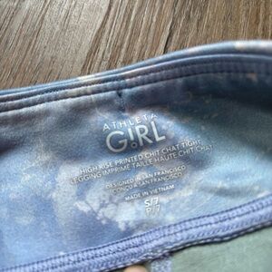 Athleta Girl High Rise Printed Chit Chat Tight Leggings Size Small/ 7. Some pilling and wear on the leggings but perfect for playing