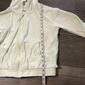 The Athleta Girl Mint Sand & Surf Full Zip Terry Cotton Hoodie Jacket in size XXL - 16 is a versatile and stylish piece perfect for girls who love to stay active or travel. Made with a blend of cotton, modal, and polyester, this hoodie features a full zip closure, hood, and thumbholes for added comfort and style. The mint color and solid pattern make it easy to mix and match with other outfits, while the elastic waist and pockets provide functionality for all seasons. Whether it's for a beach day or a casual outing, this hoodie is a must-have for any young athlete or adventurer. Please note that clothing colors may appear different on screen. Comes from a smoke free home and pet friendly home. Measurements taken flat with garment un-stretched. Please ask any questions that you may have. *NOTE there is a stain on the end of one sleeve, see photo*