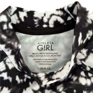 Athleta Girl Mock Neck Black and White Tie Dye Print Rashguard Size 8-10 Medium