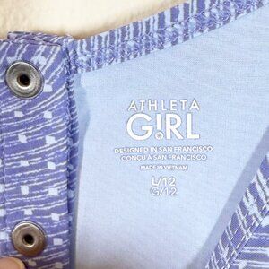 Athleta Girl Romper Size L/12 Blue Pattern Chest 16” laying flat Waist 12.5” laying flat Inseam 3.5” Length 28”