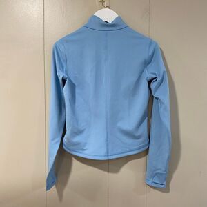 Adorable Athleta Girl “Chit Chat” jacket in a soft light blue color. Features a full zip front, mock neck, and stretchy athletic material that’s perfect for school, play, or light workouts. Comfortable, breathable, and easy to layer year-round.