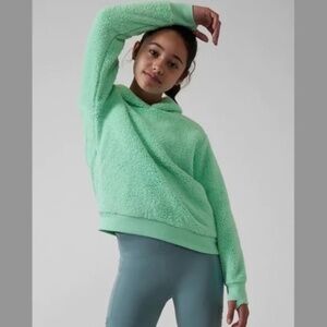 Athleta Girl So Snug Sherpa Hoodie 2.0 Fleece Pullover Mint Green Size XL / 14