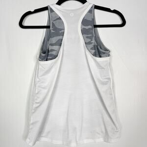 Athleta Girl XLarge 14 Tie Breaker Tank Top Camo Gray White Double Layer Active