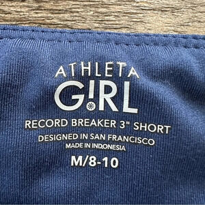 Athleta Girl sz medium 8 10 Navy Blue Record Breaker 3” Shorts Activewear Summer