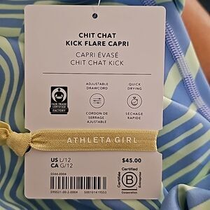 Athleta Girls Chit Chat Kick Flare Capri, Blue/Green Swirl, Size Large/12, NWT