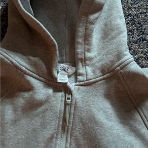 Cozy girls gray half-zip hoodie. Perfect for casual wear. One small stain on back of arm see pic. Size xxl which is girls 16