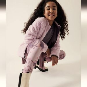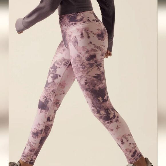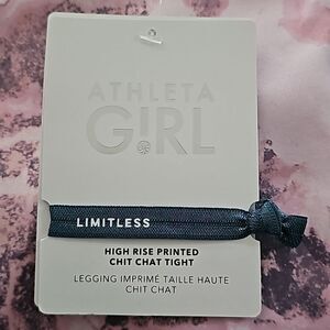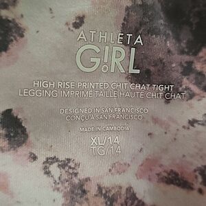 Athleta Girls High Rise Printed Chit Chat Tight, Size XL/14, Moonstone Pink, NWT