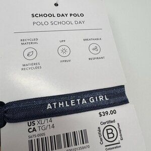 NWT, this Athleta navy blue girls' polo shirt is a must-have for any wardrobe! Girls size XL/14, it's made from soft, breathable fabric, it offers all-day comfort while keeping a polished, put-together look. It's sporty and fashionable!