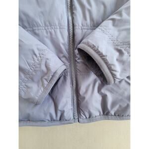 Athleta Girls Reversible Warm + Fuzzy Quilted Puffer Jacket Stormy Sky Blue SM