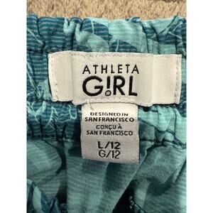 Athleta Girls Size 12/L Floral Drawstring Athletic Shorts Blue