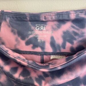 These like new Athleta Girls XXL/16 Pink Quartz High Rise Stash Your Treasures Capri Leggings are versatile and stylish pieces perfect for young girls who love to stay active and trendy. These leggings feature a tie-dye pattern in a vibrant pink color, making them versatile for various occasions such as travel, activewear, and casual wear. The high rise waistband provides added comfort and support, while the blended fabric ensures durability and flexibility. Whether it's winter, summer, fall, or spring, these leggings are a must-have for any young fashionista who wants to add a pop of color to her wardrobe.